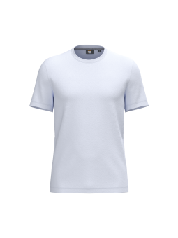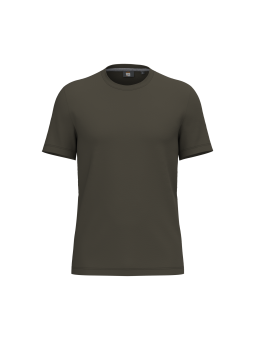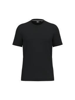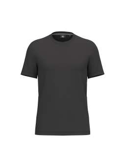 65% gerecycled polyester / 35% gekamd katoen. Jerseytricot, gebreid met VORTEX-garen om de vezel te verstevigen (tegen pluizen) voor de effen kleuren. Jerseytricot voor de kleur Oxford Grey. Enzymgewassen. Antibacteriële behandeling. Wasbaar op 60°C. Rechte snit. V-hals met 1x1 ribboord. Nektape...