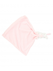 100% polyester. Knuffeldoekje konijn (roze) en knuffeldoekje beer (blauw) met rammelaar binnenin. Zachte stof met gevoerde dikte. Toegang via een ritssluiting voor eenvoudige personalisatie. Voldoet aan de Europese norm voor speelgoed EN71. Geschikt voor alle leeftijden.