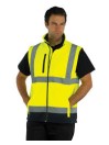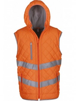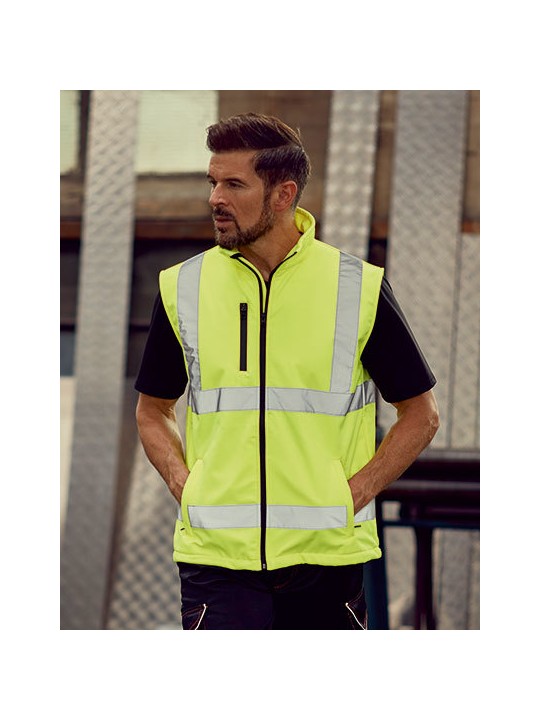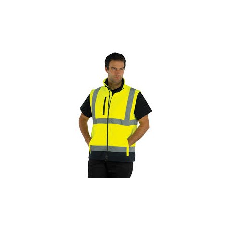 100% polyester. 3-laags, waterdicht tot 8.000mm. Buitenkant 100% polyester. middenlaag: TPU waterbestendig Binnenlaag: Microfleece. 100% waterdichte ritsen en ritstrekkers met merk aangebracht op de voor- en borstzak. 2 handwarmerzakken met ritssluiting. Verlengde rug. 5 cm brede reflectiebanden rond het lichaam en één over elke schouder. Voldoet aan EN ISO20471:2013 Klasse 2