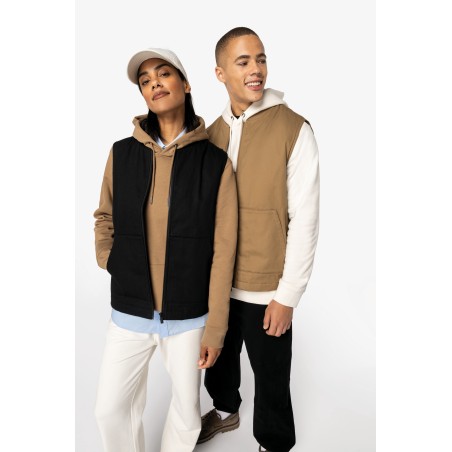 NS623 - Ecologische gevoerde uniseks bodywarmer van twill met teddykraag