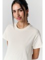 80% biologisch katoen / 20% post-consumer gerecycled polyester. Gemaakt in Portugal. Gekamd katoen. Badstof. Fitted model met afhangende schouders. Enzymgewassen. 1x1 ribboord in de kraag. Afwerking van de halsopening met ton-sur-ton nektape met visgraatmotief. Afgewerkt met dubbel stiksel aan de manchetten en onderkant. Halvemaan op de achterkant. Schouderversteviging.