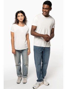 100% katoen. Oxford Grey kleurenpalet: 90% katoen / 10% viscose. Alle kleurenpaletten zijn gemaakt van ‘Organic in Conversion’ katoen. Gekamd katoen. Rechte snit. Cut-and-sew-techniek. Kraag van 1x1 ribstof afgewerkt met ribstiksels. Bijpassende nektape in de hoofdstof in de kraag. Dubbel stiksel op de mouwuiteinden en de boord onderaan. Geen merklabel, enkel een afscheurbaar maatlabel voor eenvoudige personalisatie.