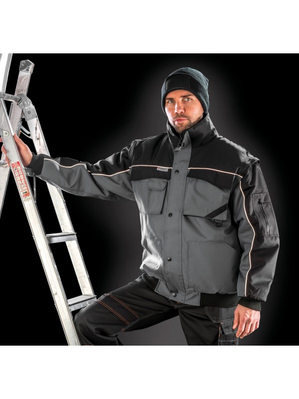 Buitenkant: 600D heavy duty oxford Taslon met PU coating. Wattering: 100% polyester 160 gram. Binnenvoering: 100% polyester 190T. Afritsbare mouwen. Polartherm™ gevoerde kraag. Versterkte naden. Kraag met fleece gevoerd. 3M™Scotchlite ™ reflecterende piping op de voor- en achterkant en op de mouwen. Volledige ritssluiting met stormoverslag met drukknopen. Lusjes voor headset. 2 opgezette zakken, 2 borstzakken met 2 penhouder en 2 sleutelringen (waarvan 1 veborgen). 2 binnenzakken. Elastische mouwuiteinden en onderkant. Drukkersritsen. Windproof.