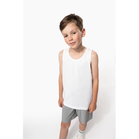 100% birdseye-polyester. Lichte, sneldrogende stof. Biesje aan halsopening en armsgaten. Dubbel stiksel op de zoom onderaan. Afneembaar merklabel.