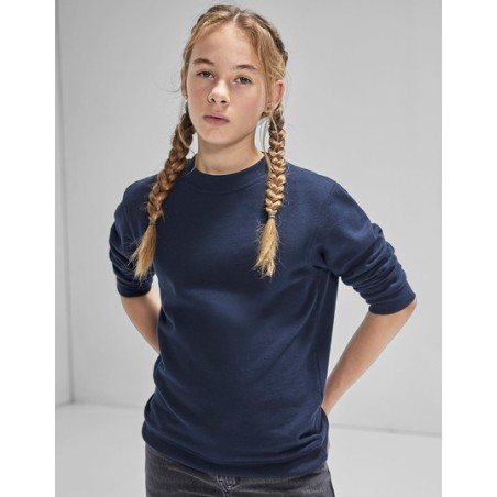 80% voorgekrompen ringgesponnen katoen / 20% gerecycled polyester. Ronde hals. Ingezette mouwen en verlaagde schouders. Klassieke boorden en onderzoom in 1x1 elastaan-rib. Zijnaden