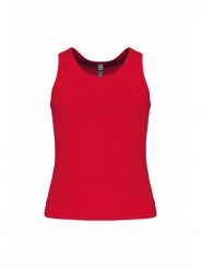 100% katoen. 1x1 rib. Racerback. Afwerking met dubbele stiksels. Gecertificeerd STANDARD 100 by OEKO-TEX®