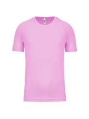 100% polyester. Sneldrogende lichte stof. Ronde hals. Nektape. Raglan mouwen met overstiksels. Afwerking met dubbele stiksels aan de mouwuiteinden en onderkant. Gecertificeerd STANDARD 100 by OEKO-TEX® N° CQ 1007/7, IFTH.