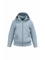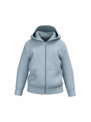 50% ringgesponnen katoen / 50% post-consumer gerecycled polyester. Geborsteld fleece aan de binnenkant. Straight snit. Cut-and-sew. Enzymgewassen. 2x1 ribboord in buisconstructie voor een betere afwerking aan hals, mouwuiteinden en onderkant. Dubbel stiksel aan schouders, mouwinzet, mouwuiteinden en onderaan. Kangoeroezakken. Ton-sur-ton ritssluiting in nylon. Capuchon gevoerd met jersey. Ton-sur-ton nektape van jersey in de hals. Geen label merklabel, maar een maatlabel in de kraag voor eenvoudige personalisatie