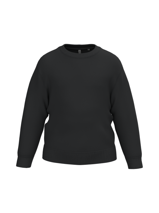 50% ringgesponnen katoen / 50% post-consumer gerecycled polyester. Geborsteld fleece aan de binnenkant. Straight snit. Cut-and-sew. Enzymgewassen. 2x1 ribboord in buisconstructie voor een betere afwerking aan hals, mouwuiteinden en onderkant. Dubbel stiksel aan schouders, mouwinzet, mouwuiteinden en onderaan. Ton-sur-ton nektape van jersey in de hals. Geen merklabel, maar een maatlabel in de kraag voor eenvoudige personalisatie.