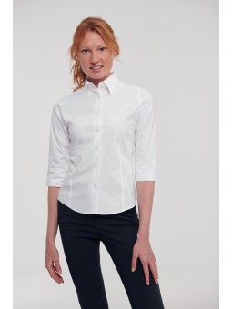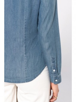 65% polyester / 35% katoen popeline. Easy Care. Mao kraag zonder knopen. Knooplijst met toon op toon knopen. Borstzakje links in de vorm van een V. Verstelbare mouwuiteinden met afgeronde manchetten. 1 reserveknoop. Onderkant afgerond. Gecertificeerd STANDARD 100 by OEKO-TEX®N° CQ1007/8, IFTH.