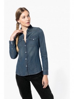 K514 - Damesblouse met "Mao" kraag lange mouwen