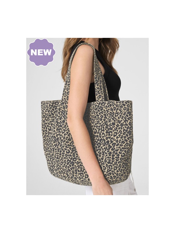 70% gerecycled katoen (GRS-gecertificeerd) / 30% polyester (GRS-gecertificeerd). Verwassen effect met luipaardprint. Stoffen draaghengsels. Kan met de hand of over de schouder worden gedragen. Afneembaar label voor eenvoudig rebranding. Elk stuk is uniek door de gebruikte verftechniek; kleurvariaties en vervaging kunnen in de loop van de tijd optreden.