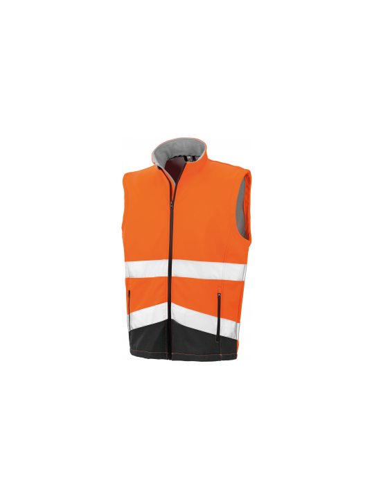 Softshell 3 lagen: Buitenste laag: 100% polyester. Tussenlaag: Waterdichte TPU-laag van 8000 mm, ademend 600 g & windbreaker. Binnenste laag: 100% microfleece polyester. Reflecterende stroken op het lichaam. Ritszakken. Opstaande kraag. EN ISO 20471:2013+A1:2016 Klasse 2; RIS-3279-TOM (enkel oranje).