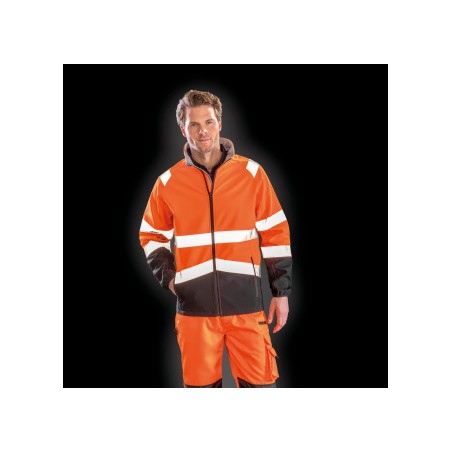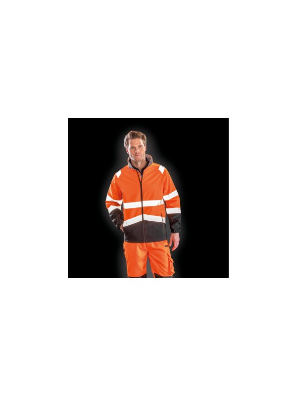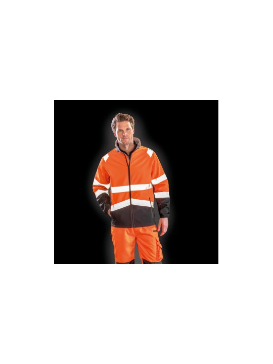 Softshell 3 lagen: Buitenste laag: 100% polyester. Tussenlaag: Waterdichte TPU-laag van 8000 mm, ademend 600 g & windbreaker. Binnenste laag: 100% microfleece polyester. Reflecterende stroken op lichaam, schouders en mouwen. Manchetten met omboorde randen. Ritszakken. Opstaande kraag. EN ISO 20471:2013+A1:2016 Klasse 2. RIS-3279-TOM (enkel oranje).