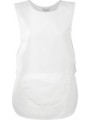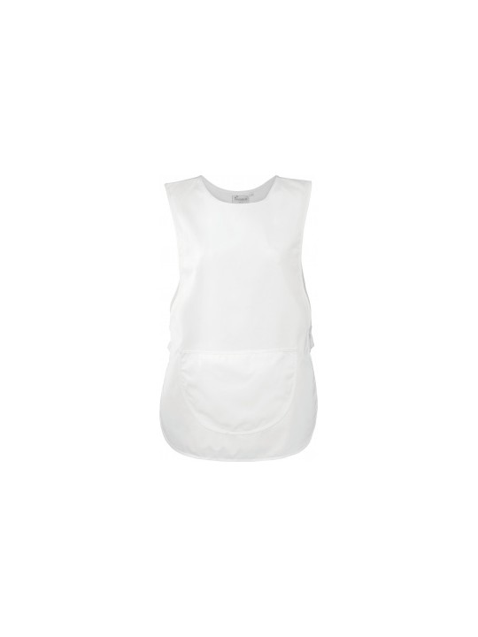 65% polyester / 35% katoen twill. Anti-kreuk behandeling. Grote voorzak. Afwerking met bies in dezelfde kleur. Zijdelingse sluiting met drukknopen. Lengte: 68 cm. Industrieel reinigen tot 85°C. Huiselijk reinigen tot 60°C.