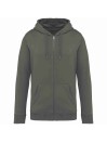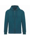 85 % biologisch katoen / 15 % post-consumer gerecycled polyester. Gekamd en ringgesponnen katoen. Fitted pasvorm. Enzymgewassen. Geborsteld fleece 3 draden LSF (Low Shrinkage Fleece). Metalen rits. Halvemaan op de achterkant. 2 kangoeroezakken. 1 x 1 ribboord aan de zoom en de mouwboorden. Dubbel stiksel aan de mouwboorden, de mouwinzetten en de zoom. Gevoerde capuchon in de hoofdstof. met koordstopper. Rond koord met uiteinden en oogjes van gerecycled metaal. Nektape met kepermotief aan de binnenkant.