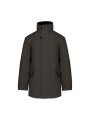 Buitenkant: 100% oxford polyester. Binnenkant: gewatteerd polyester. 2 voorzakken met rits. 2 binnenzakken waarvan 1 voor de GSM. Capuchon verborgen in de kraag. Kraag met fleecevoering. Drukkersrits. Ritssluiting verborgen onder een lijst met drukknopen en klittenband. Verstelbare mouwuiteinden met klittenband.