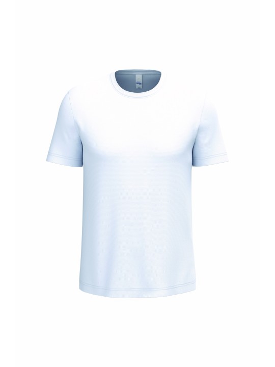 100% polyester. Mesh piqué breisel. Lichtgewicht, sneldrogende stof. Rechte snit. Ronde hals in mesh piqué breisel met dubbele stiksels. Toon-op-toon nektape aan de binnenzijde. Mouwboorden en zoom met dubbele stiksels afgewerkt. Afneembaar merklabel.