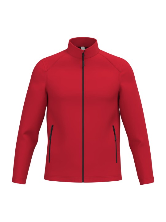 95% polyester / 5% elastaan. Softshell 2 lagen met waterafstotende behandeling. Binnenkant: zwarte microfleece van 100% polyester. Rechte snit. Opstaande kraag. Twee zijzakken met polytricot voering, nylonritsen en zwarte ritstrekkers. Ritssluiting in zwart nylon met kinbescherming en ritstrekker. Schouder- en rugstukken met sierstiksels. Zwarte nektape aan de binnenzijde. Mouwboorden en zoom afgwerkt met dubbele stiksels. Afneembaar merklabel.