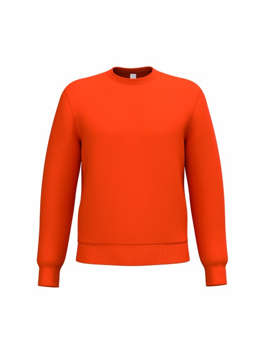 50% katoen / 50% polyester. Geruwd molton, tubulair geweven. Rechte snit. Hals, mouwboorden en zoom in 1x1 ribboord met dubbele stiksels. Afneembaar merklabel.
