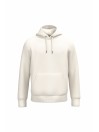 85% biologisch katoen, 15% post-consumer gerecycled polyester. Gekamd katoen. Rechte snit. Geborsteld fleece met 3 LSF-garens (Low Shrinkage Fleece: voorgekrompen fleece). Enzymgewassen. 1x1 ribboord aan de mouwuiteinden en onderaan. De hals is binnenin afgewerkt met ton-sur-ton nektape in jersey. Dubbel stiksel aan weerszijden van de armsgaten, de mouwuiteinden en onderaan. Capuchon met plooi en stiksel, gevoerd met de hoofdstof, met koordstopper. Ronde aanrijgkoordjes met uiteinden en ringetjes in gerecycled metaal. Kangoeroezak. Halvemaan op de achterkant