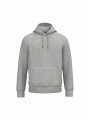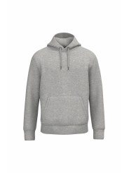 85% biologisch katoen, 15% post-consumer gerecycled polyester. Gekamd katoen. Rechte snit. Geborsteld fleece met 3 LSF-garens (Low Shrinkage Fleece: voorgekrompen fleece). Enzymgewassen. 1x1 ribboord aan de mouwuiteinden en onderaan. De hals is binnenin afgewerkt met ton-sur-ton nektape in jersey. Dubbel stiksel aan weerszijden van de armsgaten, de mouwuiteinden en onderaan. Capuchon met plooi en stiksel, gevoerd met de hoofdstof, met koordstopper. Ronde aanrijgkoordjes met uiteinden en ringetjes in gerecycled metaal. Kangoeroezak. Halvemaan op de achterkant