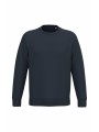 85% biologisch katoen, 15% post-consumer gerecycled polyester. Gekamd katoen. Rechte snit. Geborsteld fleece met 3 LSF-garens (Low Shrinkage Fleece: voorgekrompen fleece). Enzymgewassen. 1x1 ribboord aan hals, mouwuiteinden en onderaan. De hals is binnenin afgewerkt met ton-sur-ton nektape in jersey. Dubbel stiksel aan weerszijden van de armsgaten, de mouwuiteinden en onderaan. Halvemaan op de achterkant.