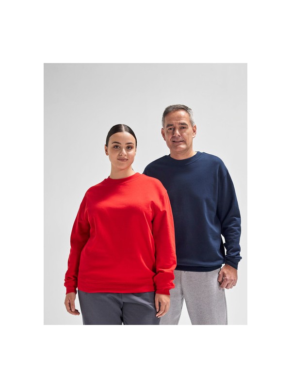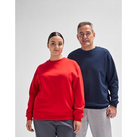 50% voorgekrompen ringgesponnen katoen / 50% gerecycled polyester. Moderne, losse pasvorm. Neutrale stijl met zijnaden. Ingezette mouwen en verlaagde schouders. Klassieke boorden en onderzoom in 1x1 elastaan-rib.