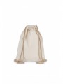Katoen / Polyester. Tasje met koordje, bestaande uit 67% gerecycled katoen en 30% gerecycled polyester (Black Night), 75% gerecycled katoen en 22% gerecycled polyester (Ecume, Horizon Blue), 75% gerecycled katoen en 20% gerecycled polyester (Flint Grey). Sluiting met dik aanrijgkoord. Bestaat in kinderversie KI5103.