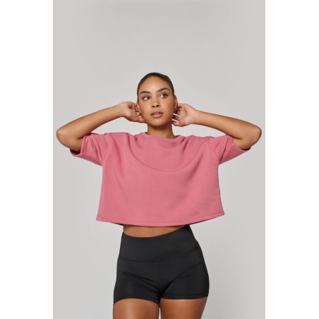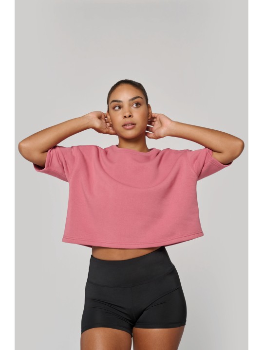 PA394 - Cropped damessweater met korte mouwen en ronde hals