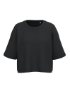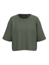 85% katoen / 15% polyester. Superzachte, aan de binnenkant geborstelde stof, voor een groot comfort. Wassen op 40°C. Oversized snit. Cropped. Ronde hals met 1x1 ribboord en nektape aan de binnenkant, in ton-sur-ton kepermotief. Dubbel stiksel aan de mouwuiteinden, onderaan, aan de mouwinzet en aan de hals. Geen merklabel, maar enkel een maatlabel voor eenvoudige personalisonalisatie