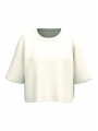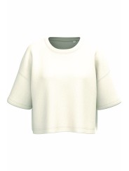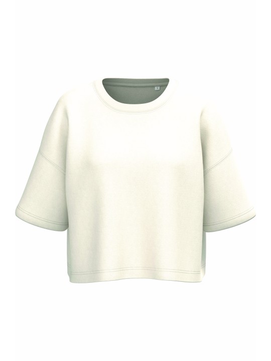 85% katoen / 15% polyester. Superzachte, aan de binnenkant geborstelde stof, voor een groot comfort. Wassen op 40°C. Oversized snit. Cropped. Ronde hals met 1x1 ribboord en nektape aan de binnenkant, in ton-sur-ton kepermotief. Dubbel stiksel aan de mouwuiteinden, onderaan, aan de mouwinzet en aan de hals. Geen merklabel, maar enkel een maatlabel voor eenvoudige personalisonalisatie