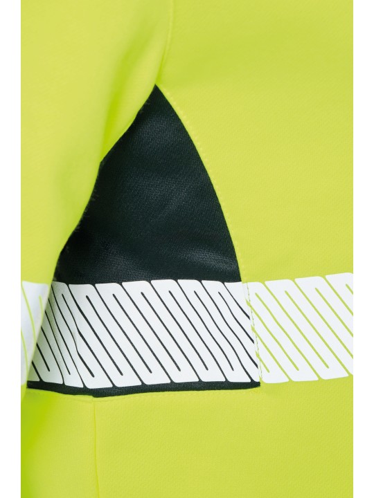 65% gerecycled polyester / 35% katoen. Gekamd katoen. Geborsteld fleece. Anti-pilling behandeling. Wasbaar op 60°C (25 wasbeurten). Regular fit. Contrasterende schouderinzetten met een 5 cm brede segmentreflecterende band. Kraag gevoerd met 100% gerecycled polyester in 1x1 ribboord. Contrasterend inzetstuk onder de armen. Twee segmentreflecterende banden van 5 cm aan de voor- en achterkant en op de mouwen. Contrasterende onderkant van de mouwen en het kledingstuk. 1x1 ribboord in contrasterend 100% gerecycled polyester aan de onderkant van de mouwen en het kledingstuk. PBM Klasse II. Normen NF EN 13758-1+A1:2007 + NF EN 13758-2+A1:2007: UPF40+ bescherming tegen UV-straling, NF EN ISO 13688:2013 + NF EN ISO 13688/A1:2021 (Algemene eisen voor beschermende kleding), NF EN ISO 20471:2013 + NF EN ISO 20471/A1:2017: Klasse 2 (Hoge zichtbaarheid kleding - testmethoden en eisen), RIS-3279-TOM Issue 2:2019 alleen voor de kleur Hi Viz Oranje/Marine (Spoorwegindustrie norm). Afneembaar merketiket.